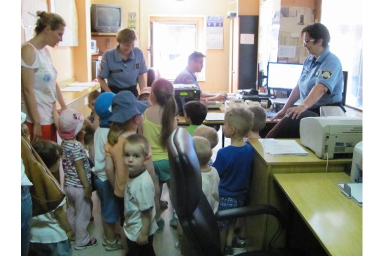 Kako bi što više saznali o policijskom poslu razgledali su službene prostorije u kojima rade policijski službenici, poslušali su što rade neki od njih te potom razgledali policijska vozila. Tako su djeca saznala kojih sve policijskih poslova ima, odnosno što to policija radi i zbog čega, upućeni su kako se trebaju ponašati u prometu, a saznali su i tko je njihov kontakt policajac kojemu se slobodno i s povjerenjem mogu obratiti i u svakom ga trenutku zatražiti pomoć. Pojašnjeno im je kako je kontakt policajac ili kako ga neki nazivaju, kvartovski policajac, tu kako bi pomagao svim građanima, a pogotovo onima koji traže i trebaju pomoć. Djeci je bio zanimljiv i način uzimanja otisaka papilarnih linija, a oni koji su to željeli svoje otiske su ponijeli sa sobom kao uspomenu na ovaj susret. Za uspomenu i druženje s policijom podijeljene su im i bojanke „Prvi koraci“, pomoću kojih će na zabavan i njima primjeren način naučiti nešto više o sigurnosti u prometu.