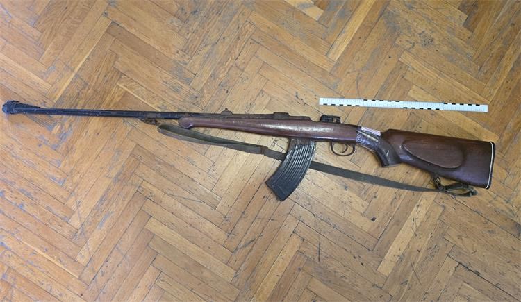 Za navedeno kazneno djelo policija sumnjiči 58-godišnjeg hrvatskog državljanina od kojeg je oduzeta ručno prepravljena puška s užlijebljenim cijevima s pričvršćenim s spremnikom, inače spremnikom za automatsku pušku za 30 komada streljiva. Osim toga, od osumnjičenog je oduzet i komad vojnog streljiva.