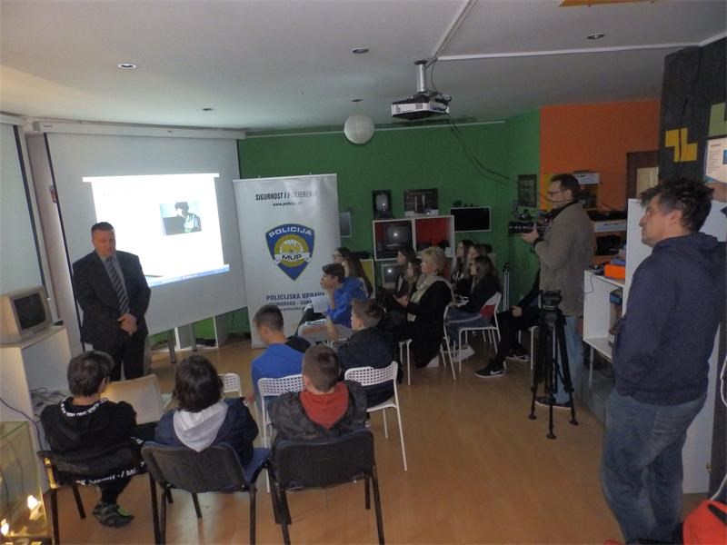 Nakon uvodnih poruka, slijedilo je tematsko predavanje o elektroničkom nasilju, koje je održao Dario Tonković, policijski službenik iz Odjela prevencije. Naveo je kako Internet uz svoje dobre strane ima i one loše: napad na računala, napad na osobne podatke i osobnost. Tako pored raznih vrsta nasilja (vrebalno, fizičko i druga), postoji i Cyber ili informatičko nasilje, kojem je cilj povrijediti, uznemiriti ili na bilo koji način naštetiti, a može ga činiti jedna osoba ili grupa djece. Učenike je upoznao s razlikama između vršnjačkog i elektroničkog nasilja te načinima počinjenja elektroničkog nasilja. Sve navedeno je ilustrirao primjerima iz prakse, upućujući učenike na poduzimanje odgovarajućih mjera samozaštite, odnosno što trebaju učiniti da se i sami ne nađu u sličnim situacijama. Budući da informatičko nasilje za posljedicu može imati niz kažnjivih radnji, upoznao je učenike i s propisima i odredbama pojedinih zakona kojima su obuhvaćena razna kaznena djela (npr. uvreda, kleveta, sramoćenje i druga). Kako bi se zaštitili od mogućih posljedica posebno im je naglasio potrebu čuvanja svojih osobnih podataka, lozinki, ne iznošenja podataka o sebi i svojoj obitelji, objavljivanja i slanja fotografija koje netko može iskoristiti na način koji će za njih biti štetan. Također, istaknuo je da su njihovi roditelji oni koji žele najbolje za njih te imaju i pravo i obvezu da kontroliraju njihove kontakte i korištenje Interneta i drugih suvremenih tehnologija. Nerijetko se misli da elektroničko nasilje može proći nekažnjeno, što je pogrešno radi čega je Tonković uputio učenike što mogu učiniti kako bi policiji pomogli da pronađe počinitelja.